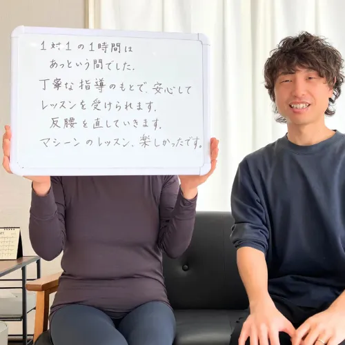 「1対1の時間はあっという間でした。丁寧な指導のもとで安心してレッスンを受けられています。反腰を治していきます。マシーンのレッスン、楽しかったです。」